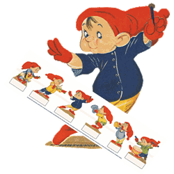 Christels små musiknisser fra 1940erne spiller julen ind. Klip dem ud enkeltvis som kravlenisser eller klip dem ud samlet, så de danner en lille guirlande. Nisseorkestret kan også samles, så de danner en kreds, hvor de spiller julemusik, så englene synger.