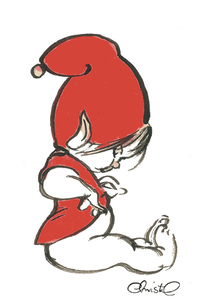 Christels nuttede lille "Julebarn med bar mave" hører til i kortserien Christels Julebørn,