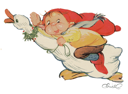 Christels " Nisse på gås" stammer fra de to store ark med Christels Nisser fra 1950erne.
