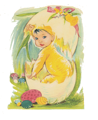 Dette lille vidunderlige påskebarn med hvid æggeskal på hovedet udgør det andet kort i serien " Christels Påske ". Påskebarn i æg blev bragt som forsideillustration i svensk Femina omkring 1950.Vi har valgt at genoptrykke motivet på et kort i A5 format.
